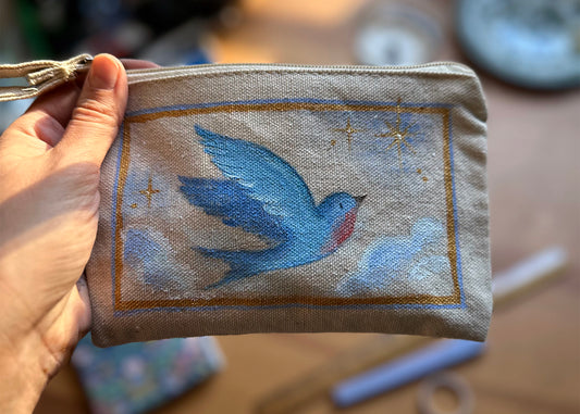 Hand-Painted Bluebird Pencil Pouch (Pre-order)