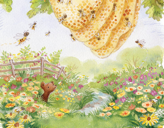 "Honeycomb & Cub" Original Watercolor Illustration from The King of All Things for Children's Room