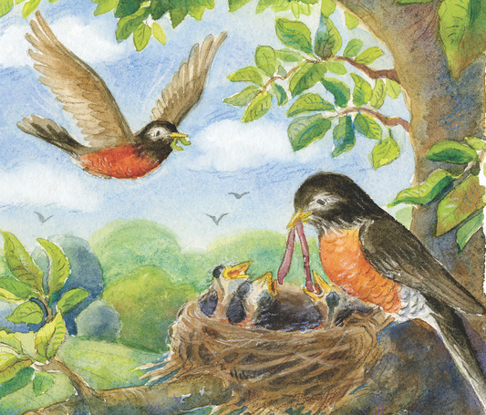 "Robins" Original Watercolor Illustration from The King of All Things for Children's Room