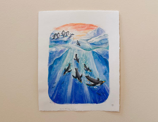"Penguins" Original Watercolor Illustration from The King of All Things for Children's Room