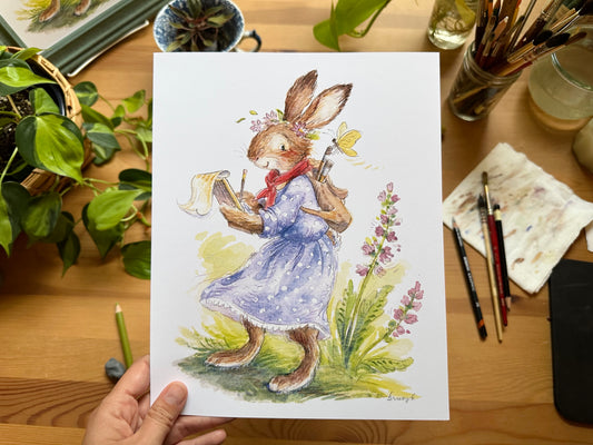 Artist Adventurer Rabbit Illustration Watercolor Print