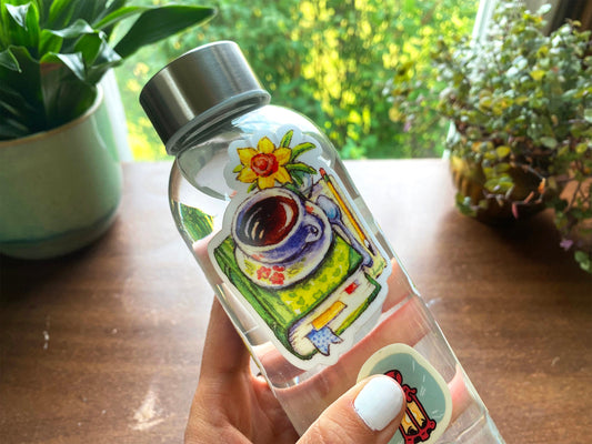 Tea Time Book Stack Daffodil 3" Vinyl Sticker Cottagecore Book Lover