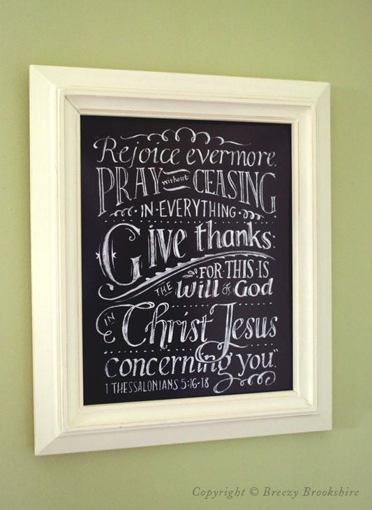 Rejoice Evermore - Chalkboard Art Print Bible Verse - 8x10