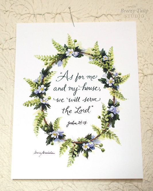 We Will Serve the Lord - Watercolor Art Print - Hand Lettering - Woodland Home Decor