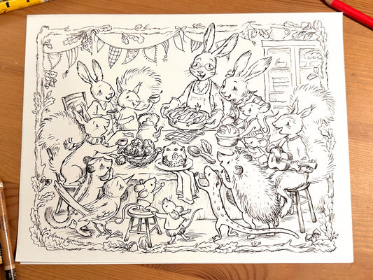 Woodland Thanksgiving Feast Coloring Page for Fall