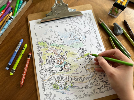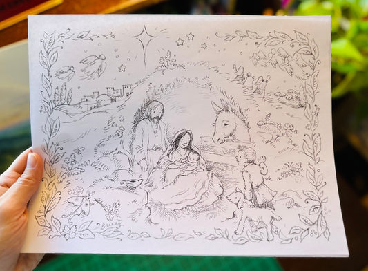 Silent Night Nativity Scene Coloring Page for Christmas Storybook Style Illustration for Children